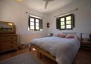 - slaapkamer met tweepersoonsbed, plafondventilators en badkamer ensuite