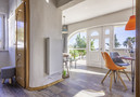 De open keuken met keramisch fornuis is uitgerust met een koelkast / vriezer, magnetron, oven, serviesgoed / bestek, keukengerei, koffiezetapparaat, broodrooster, waterkoker en is gelegen in een ideale ruimte voor kinderen ...