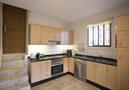 - open keuken met electrisch fornuis, electrische oven, magnetron, afwasmachine, koel-vriescombinatie, koffiezetapparaat, waterkoker en broodrooster