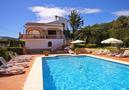 Grote en comfortabele villa met privé zwembad in Javea, aan de Costa Blanca, Spanje voor 16 personen. De vakantievilla ligt in een heuvelachtige en residentiële omgeving en op 2 km van het strand van El Arenal, Javea.