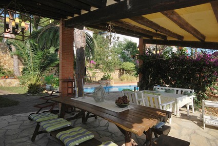 Wanneer je de rustige straat in rijdt zie je haar al liggen, Villa Kalesi, en wanneer je dan je ogen dichtknijpt tegen de stralende Spaanse zon is het duidelijk, wat is dit een prachtige vrijstaande villa! Veel privacy, een schitterende tuin, een verleidelijk glinsterend privé zwembad omringt met palmbomen die je de nodige schaduw bieden. En dan hebben we het nog niet eens gehad over de verschillende terrassen met zonnige zitjes en het weidse uitzicht over de frisgroene heuvels en natuurlijk de blauwe middellandse zee, dat is pas echt genieten! Binnen de muren van Kalesi zorgt de lichte en zonnige aankleding voor een warm thuis gevoel op vakantie. De eerste etage huist de woonkamer met airconditioning, een open keuken die voorzien is van alle gemakken. Lekker ontbijten met uitzicht kan vanuit de eetkamer die ook voorzien is van een trap naar het zonneterras. Op de tweede etage bevinden zich de 3 slaapkamers en 2 badkamers. Na een dag van onthaasting of avontuur kan je de dag afsluiten in stijl, nagenietend met een koud glas Catalaanse wijn of een ijsje op een van de zonnige zitjes. Relaxen in de overdekte lounge aan het zwembad met haar houten balken en rustieke barbecue, je waant je letterlijk een stap terug in de tijd maar wel met al het comfort van nu.