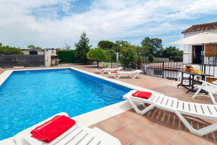 Aiguaviva Parc: Cosy, simple house "Sol". On the outskirts, 9 km from the centre of lloret de mar, in a quiet, sunny position, 9 km from the sea, 9 km from the beach, in a cul-de-sac. Private: beautiful garden to relax, swimming pool angular (8 x 4 m, 05.04. and 18.10.). Outdoor shower, terrace (50 m2), garden furniture, barbecue, public parking on the road. Shop 9 km, supermarket 9 km, restaurant 9 km, bar 2 km, bakery, bus stop 500 m. Nearby attractions: waterWorld Lloret 8 km, Marinland Blanes 17 km, Pueblo medieval de Tossa de Mar 20 km, Girona centro ciudad 26 km. Please note: car recommended. Suitable for families. The owner does not accept any youth groups. Part of the house is closed and unoccupied.Beschikbaarheid