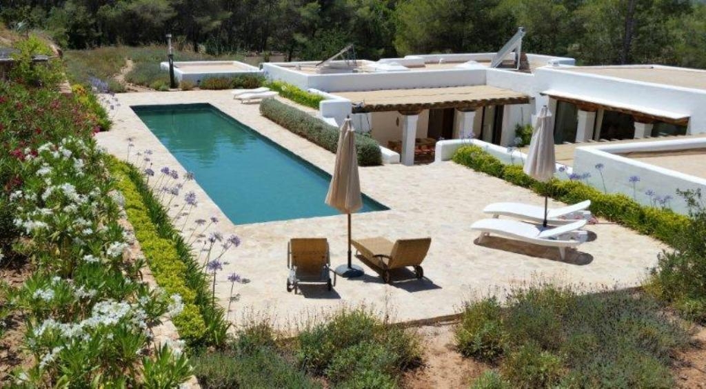 Grote en comfortabele villa met privé zwembad in Santa Eulalia, op Ibiza, Spanje voor 6 personen. De villa ligt in een landelijke en bergachtige omgeving en op 3 km van het strand.
