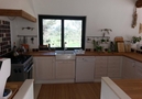 - open keuken met gasfornuis, gasoven en afwasmachine
