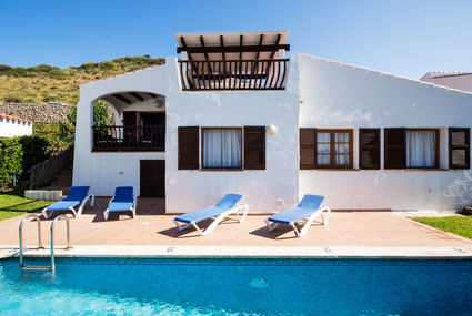 House "Villas Playas de Fornells". 400 m from the centre of Playas de Fornells, 4 km from the centre of Fornells, 26 km from the centre of Mahon, in the residential district, 350 m from the sea. Private: property 200 m2 with lawn, swimming pool (8 x 4 m, depth 90 - 175 cm, 01.01.-31.12.). Public parking on the road. Supermarket 450 m, sandy beach 350 m. Please note: car recommended.Beschikbaarheid
