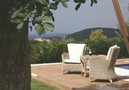 Het ruime terras is net buiten de woonkamer, waar een grote houten tafel, de stoelen en comfortabele fauteuils de ideale plaats voor maaltijden creert. Zo kunt u ontspannen en ten volle genieten van uw vakantie. Het overdekte terras (ideaal voor de zonnige dagen) leidt naar het zwembad, het terras en een aangename tuin. Het zwembad is uitgerust met een jacuzzi en zal ongetwijfeld een favoriet zijn bij de gehele famillie. Er zijn ligbedden, en een originele parasol waardoor een welkome schaduw op het terras valt.