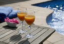 Het ruime terras is net buiten de woonkamer, waar een grote houten tafel, de stoelen en comfortabele fauteuils de ideale plaats voor maaltijden creert. Zo kunt u ontspannen en ten volle genieten van uw vakantie. Het overdekte terras (ideaal voor de zonnige dagen) leidt naar het zwembad, het terras en een aangename tuin. Het zwembad is uitgerust met een jacuzzi en zal ongetwijfeld een favoriet zijn bij de gehele famillie. Er zijn ligbedden, en een originele parasol waardoor een welkome schaduw op het terras valt.